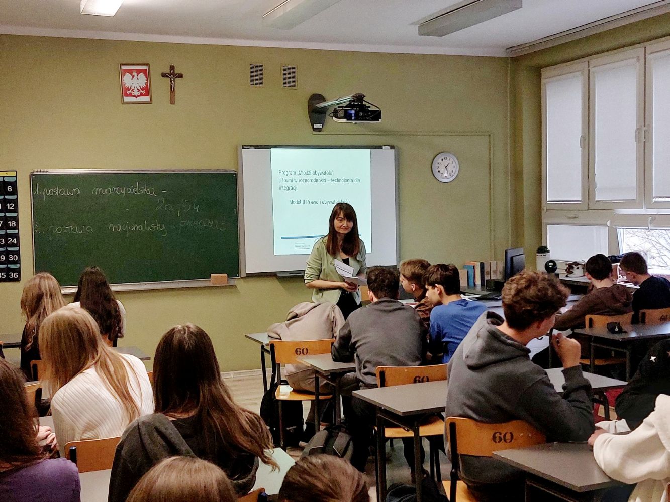 Bardzo ważnym momentem był także głos szkół, które brały udział w projekcie. Swoimi doświadczeniami podzieliła się Monika Adamska, pedagożka specjalna i nauczycielka z VII Liceum Ogólnokształcącego im. Józefa Piłsudskiego w Kielcach, pokazując, jak idee projektu przekładały się na codzienną pracę z młodzieżą.