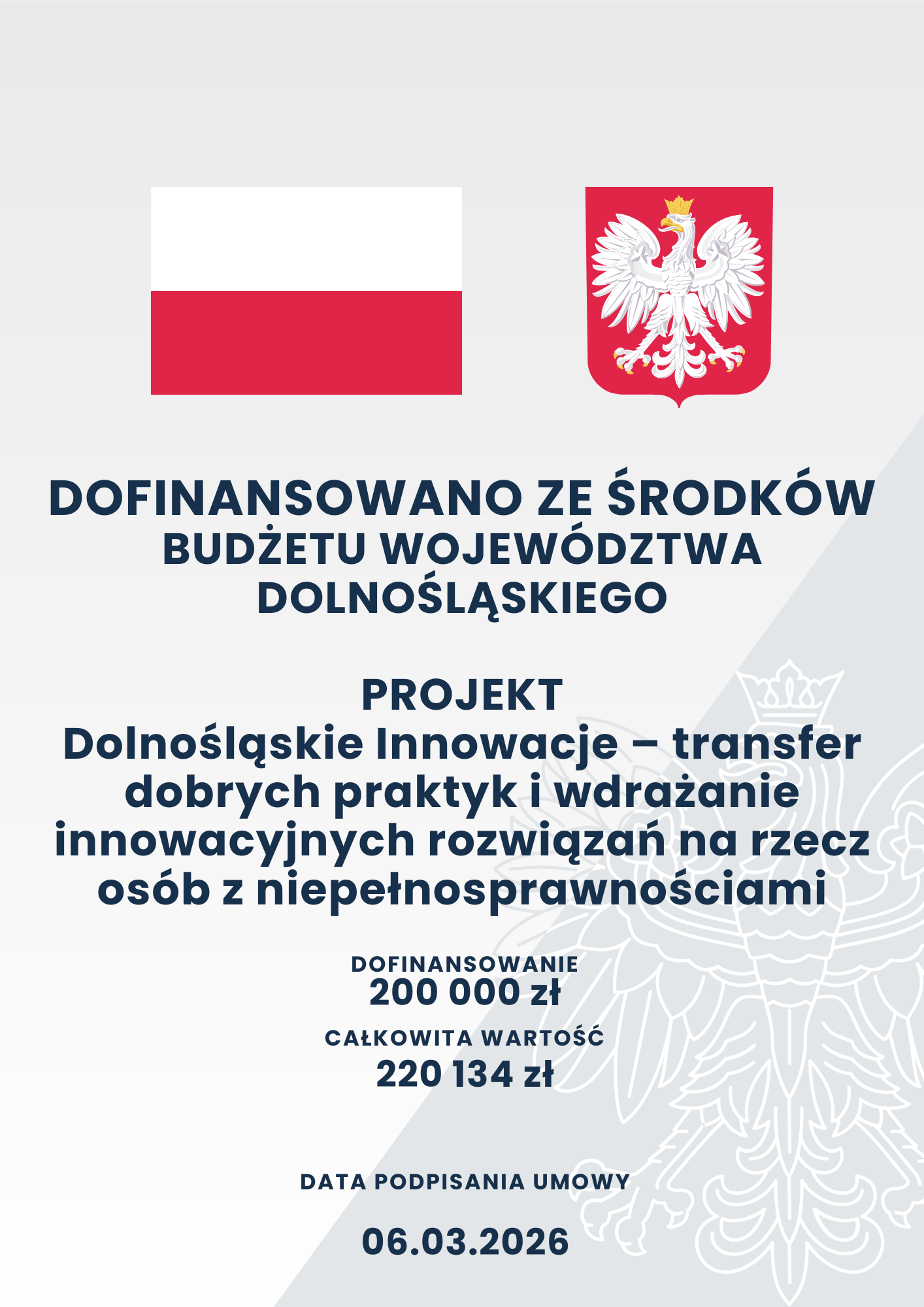 “Dolnośląskie Innowacje – transfer dobrych praktyk i wdrażanie innowacyjnych rozwiązań na rzecz osób z niepełnosprawnościami" to projekt, który poprawia dostępność tych obszarów dla osób niewidomych i słabowidzących.