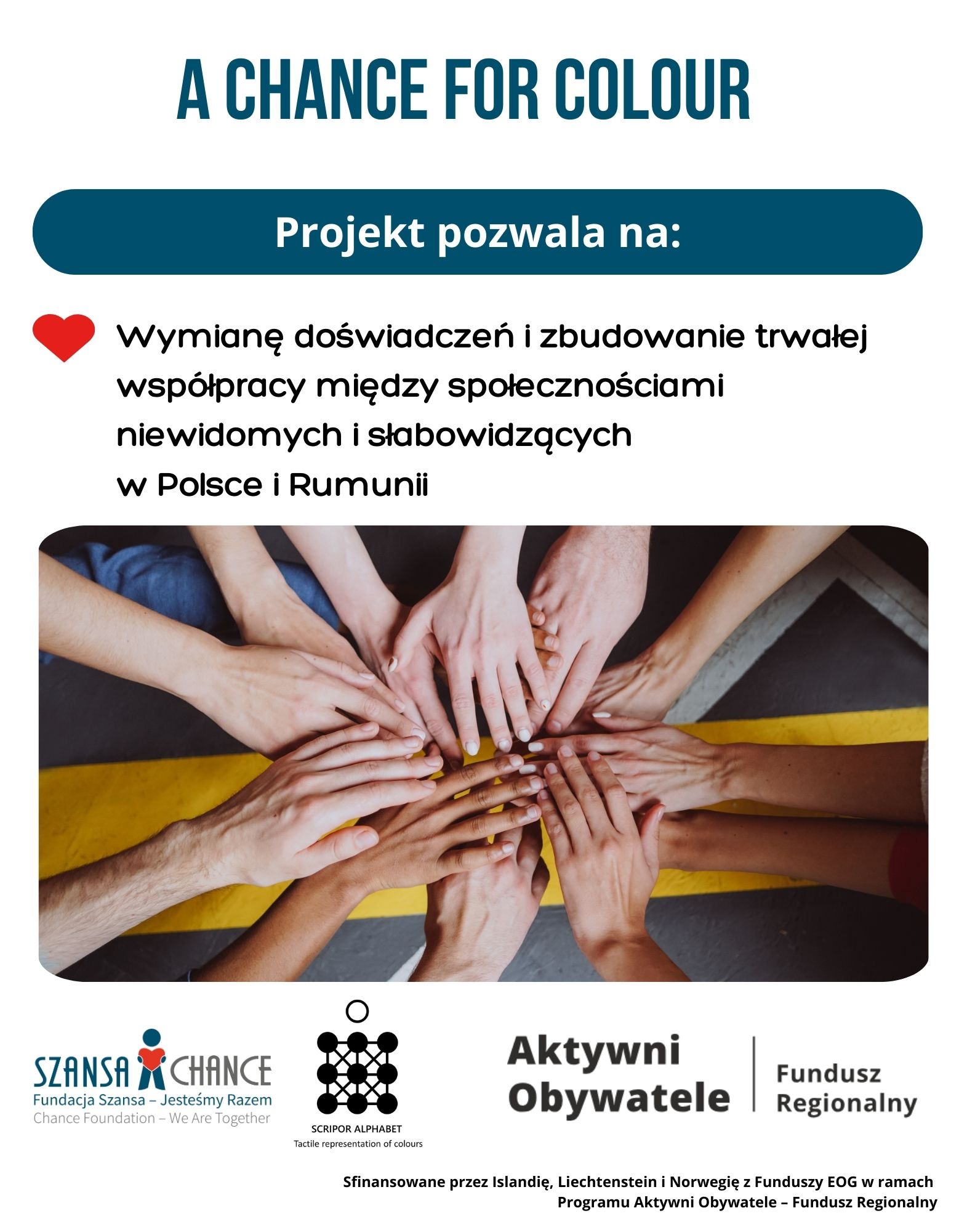 Projekt „A chance for colour” jest finansowany przez Islandię, Liechtenstein i Norwegię z Funduszy EOG w ramach Programu Aktywni Obywatele – Fundusz Regionalny